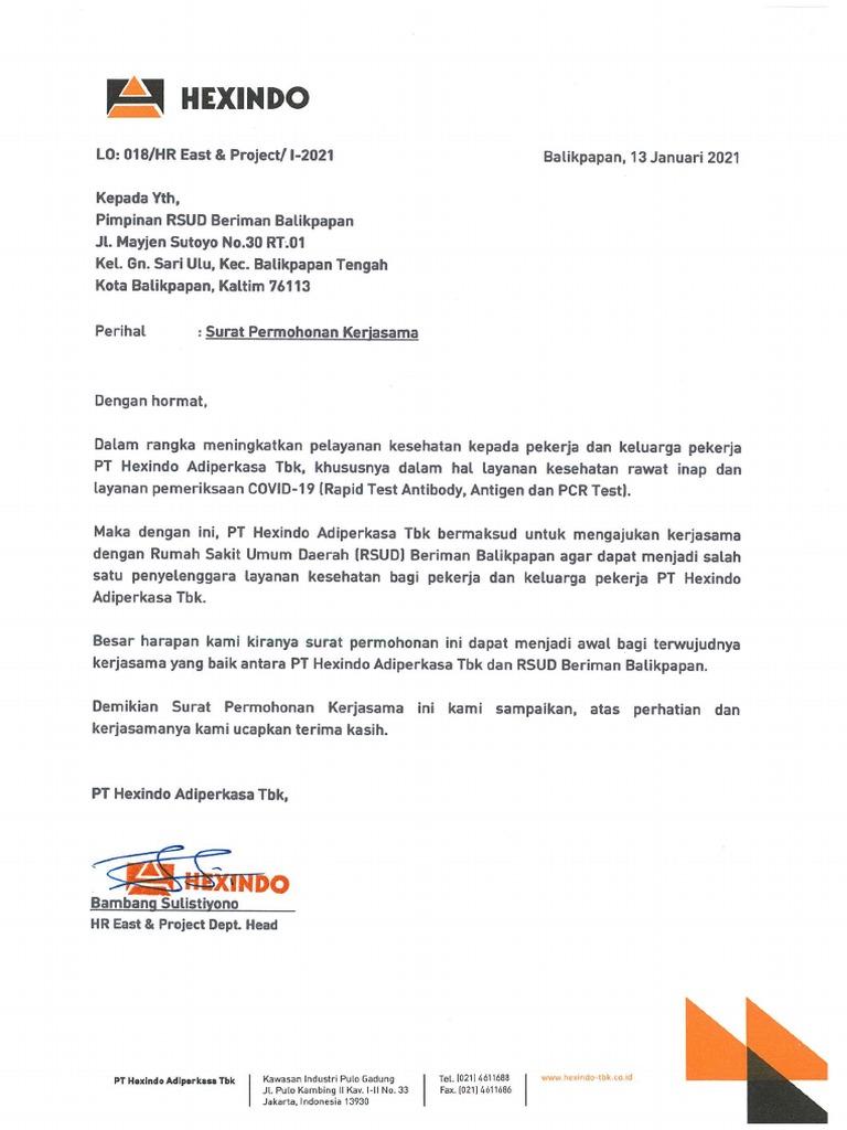 Surat Permohonan Kerjasama Pt Hexindo Adiperkasa Tbk Pdf
